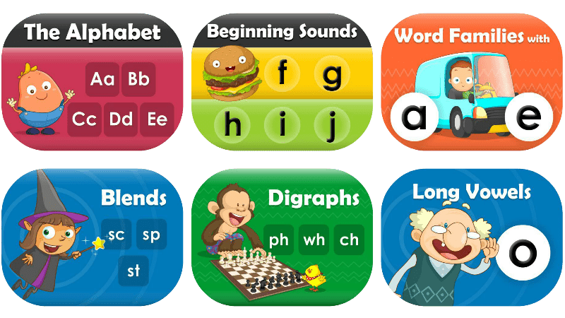 The lower levels include a foundational phonics program. Starting from learning the alphabet, students move on to identifying beginning sounds. Thereafter, short vowel word families, blends, digraphs and long vowels are introduced progressively to build the ability to decode and read more words, and prepare students for more advanced reading tasks.